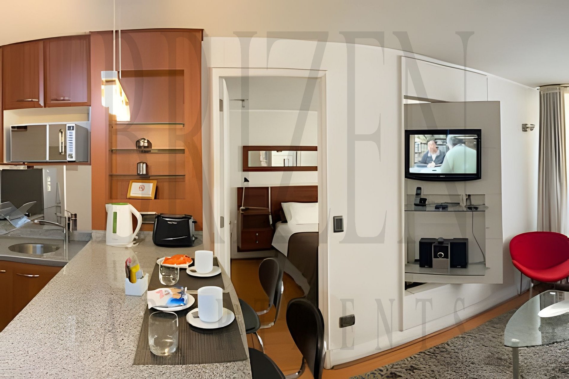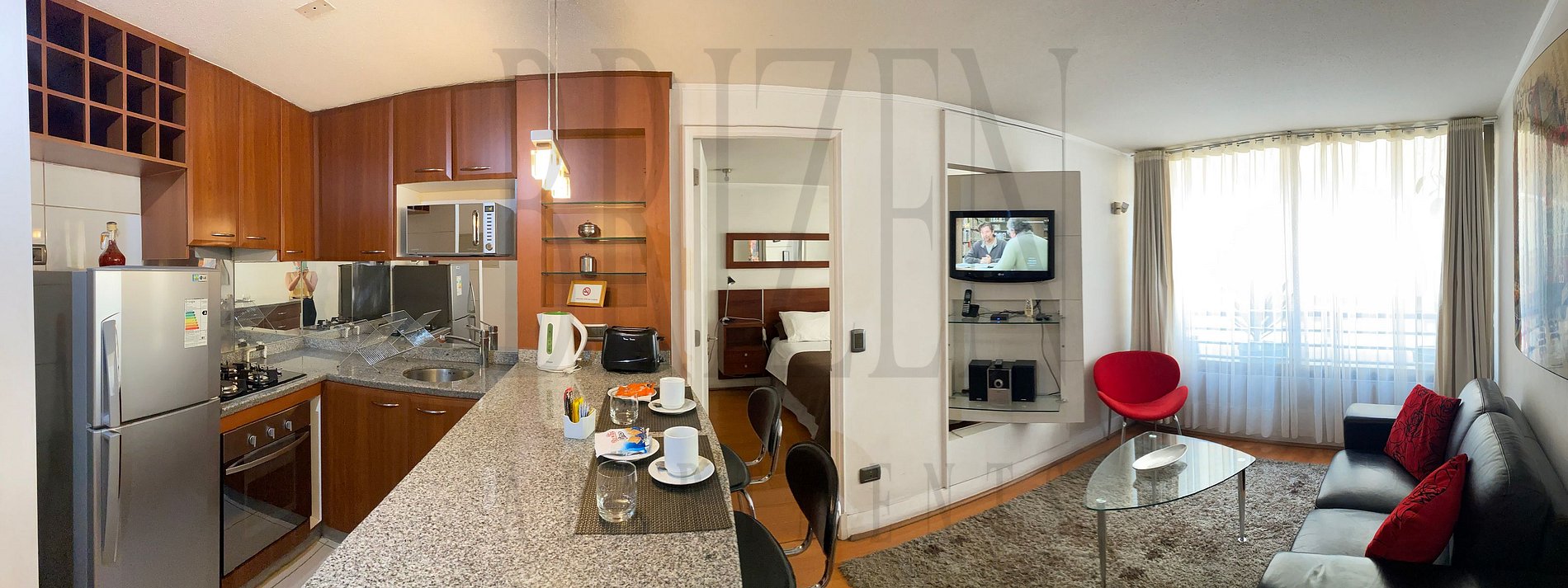 Apartamento de un dormitorio. Ubicado a pasos del metro Pedro de Valdivia, en Providencia. Nuestros apartamentos ofrecen una estadía tranquila y cómoda, con todo el equipamiento para sentirse como en casa. Ideal para viajes de negocios. WIFI + TV HD Aire acondicionadoCocina equipada Estacionamiento incluido Lavandería compartida Recepción 24 horas Ubicación inmejorable