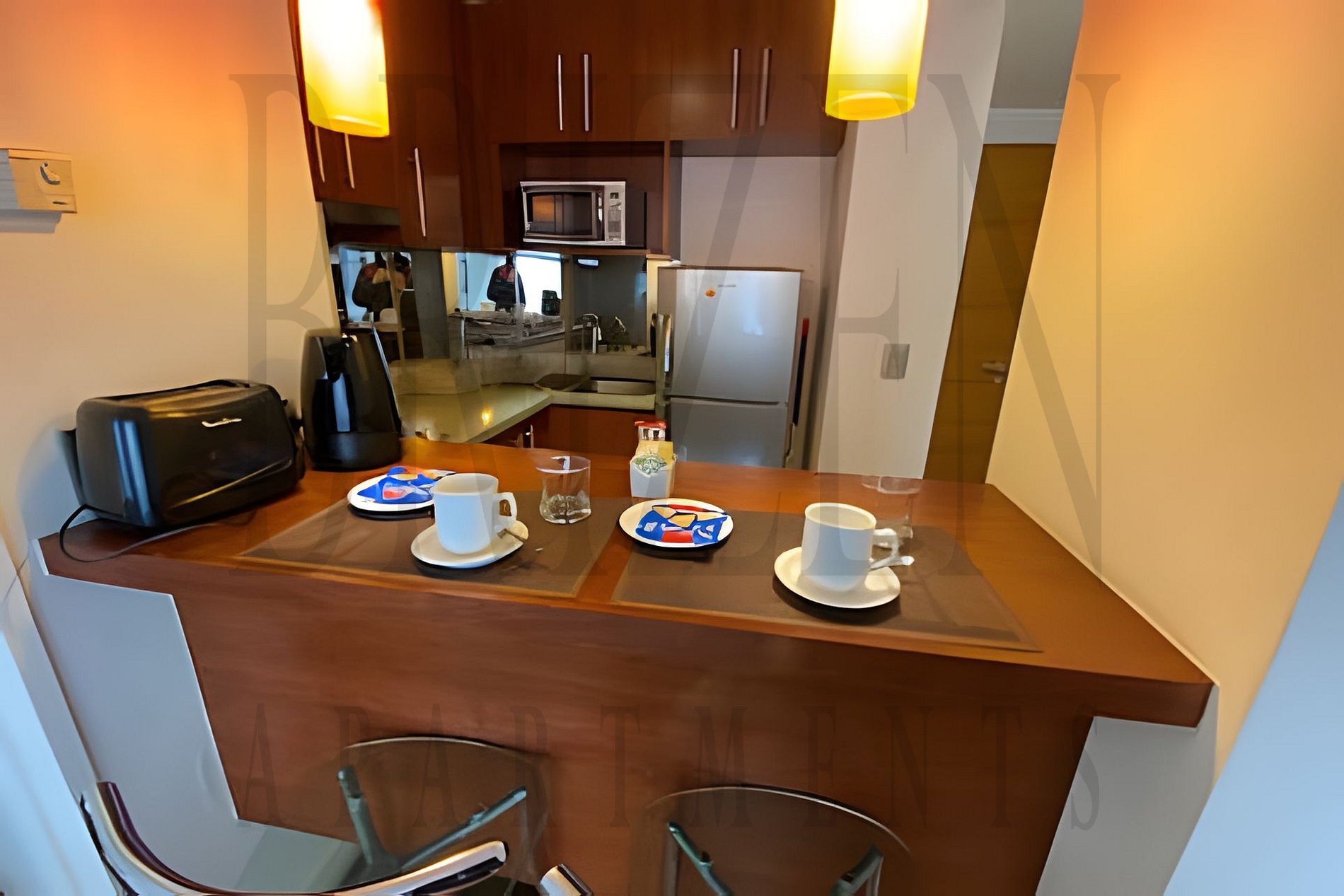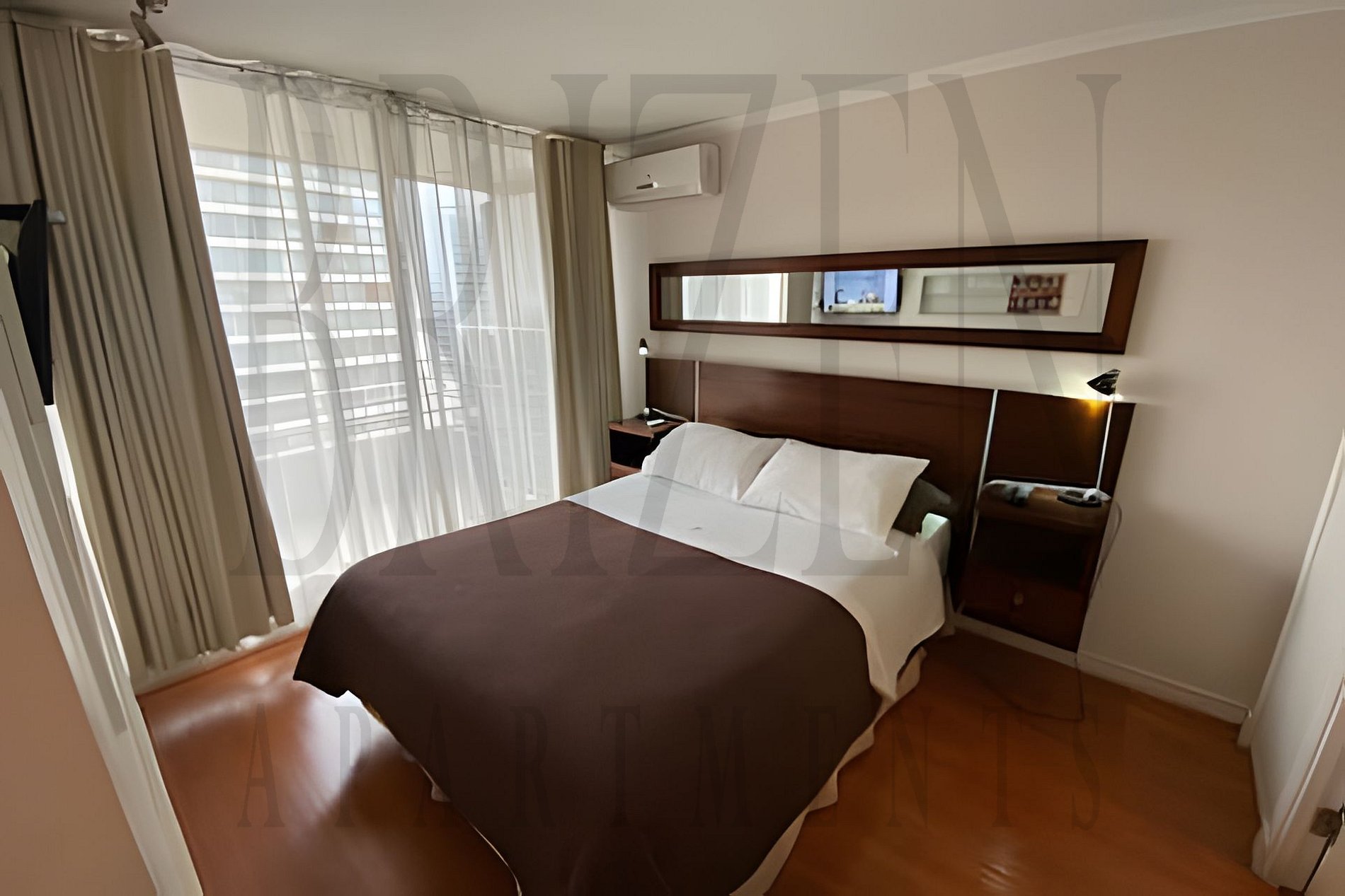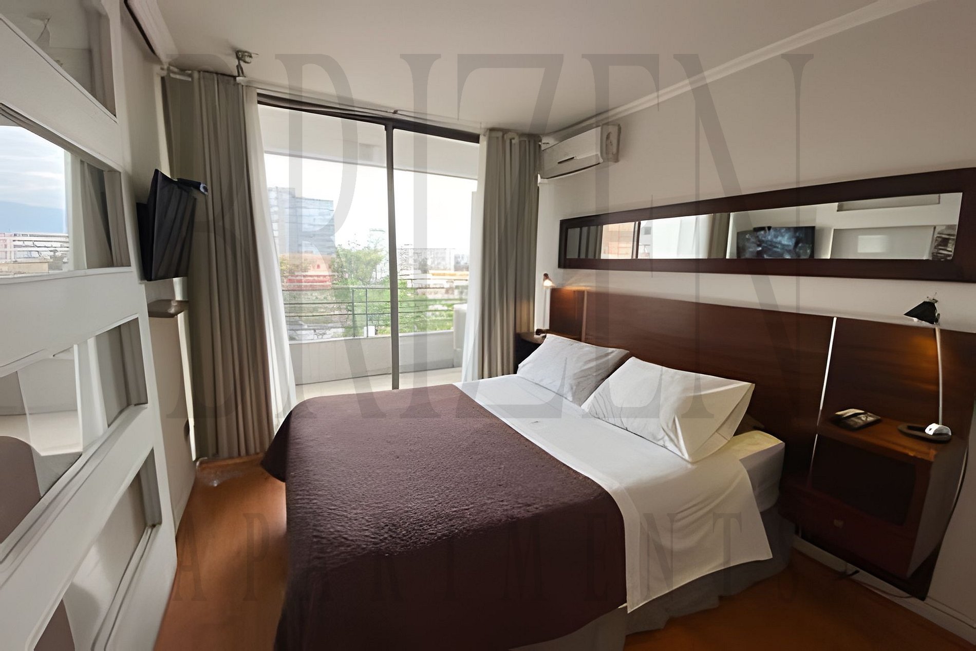 Apartamento de un dormitorio. Ubicado a pasos del metro Manuel Montt, en Providencia. Nuestros apartamentos ofrecen una estadía tranquila y cómoda, con todo el equipamiento para sentirse como en casa. Ideal para viajes de negocios. WIFI + TV HD Aire acondicionado Terraza con vistas Cocina equipada Estacionamiento incluido Piscina (de temporada) Lavandería compartida Recepción 24 horas Ubicación inmejorable